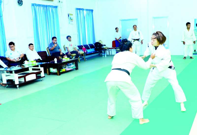 မြန်မာနိုင်ငံအိုလံပစ်ကော်မတီဥက္ကဋ္ဌ အားကစားနှင့် လူငယ်ရေးရာဝန်ကြီးဌာနနှင့် ဟိုတယ်နှင့်ခရီးသွားလာရေးဝန်ကြီးဌာန ပြည်ထောင်စုဝန်ကြီး Jeng Phang နော်တောင်သည် အားကစားနှင့် ကာယပညာဦးစီးဌာန ညွှန်ကြားရေးမှူးချုပ်နှင့်အတူ ယနေ့နံနက်ပိုင်းတွင် (၃၃)ကြိမ်မြောက် အရှေ့တောင် အာရှအားကစားပြိုင်ပွဲသို့ ဝင်ရောက်ယှဉ်ပြိုင်ရန် နေပြည်တော်တွင် စခန်းဝင်လေ့ကျင့်လျက်ရှိသည့် ဂျူဒိုနှင့်ပီတန်းအားကစားနည်းမှ ပဏာမလက်ရွေးစင် အားကစားသမားများ၏ လေ့ကျင့်နေမှုများကို လိုက်လံကြည့်ရှုအားပေးသည်။