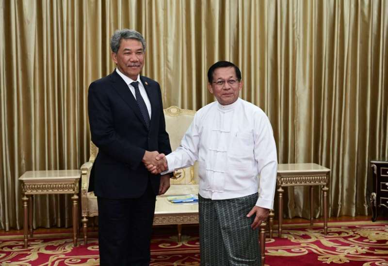 ပြည်ထောင်စုသမ္မတမြန်မာ နိုင်ငံတော်ယာယီသမ္မတ နိုင်ငံတော်လုံခြုံရေးနှင့် အေးချမ်းသာယာရေးကော်မရှင်ဥက္ကဋ္ဌ ဗိုလ်ချုပ်မှူးကြီး မင်းအောင်လှိုင်သည် မလေးရှားနိုင်ငံ၊ နိုင်ငံခြားရေးဝန်ကြီး H.E. Dato' Seri Utama Haji Mohamad Bin Haji Hasan အား ယနေ့နံနက်ပိုင်းတွင် နေပြည်တော်ရှိ တပ်မတော်ဧည့်ဂေဟာ၌ လက်ခံတွေ့ဆုံသည်။