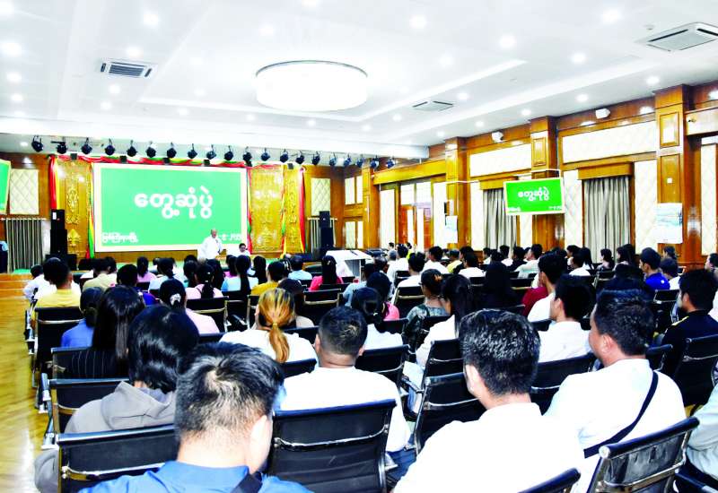 Naypyitaw State Academy မှ ဥပဒေအထူးပြု ကျောင်းသား ကျောင်းသူများအတွက် ဥပဒေပညာရပ်ဆိုင်ရာ လက်တွေ့သင်တန်းအမှတ်စဉ်(၂)သင်တန်းဖွင့်ပွဲကို ယနေ့နံနက်ပိုင်းတွင် ဥပဒေရေးရာဝန်ကြီးဌာန အစည်းအဝေးခန်းမ၌ကျင်းပရာ ပြည်ထောင်စုဝန်ကြီးနှင့် ပြည်ထောင်စုရှေ့နေချုပ် ဒေါက်တာသီတာဦး၊ ဥပဒေရေးရာဝန်ကြီးဌာနမှ ဌာနဆိုင်ရာတာဝန်ရှိသူများ၊ Naypyitaw State Academy ပါမောက္ခချုပ်၊ ဥပဒေပညာဌာန ပါမောက္ခ(ဌာနမှူး)၊ ဆရာ ဆရာမများနှင့် ကျောင်းသား ကျောင်းသူများ တက်ရောက်ကြသည်။