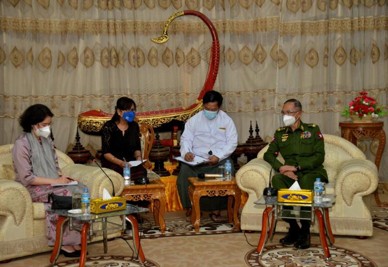 ပြည်ထောင်စုရှေ့နေချုပ် ဦးထွန်းထွန်းဦးသည် ကုလသမဂ္ဂဒုက္ခသည်များဆိုင်ရာ မဟာမင်းကြီးရုံး (UNHCR) ၏ မြန်မာနိုင်ငံဆိုင်ရာ ဌာနေကိုယ်စားလှယ် မစ္စ ဂျောင်ဟေ ခယောင်းနှင့် ဒုတိယဌာနေကိုယ်စားလှယ် မစ္စ ယူကီကို အီရီယာမာတို့အား ယနေ့ မွန်းလွဲ ၂ နာရီတွင် ပြည်ထောင်စုရှေ့နေချုပ်ရုံး အစည်းအဝေးခန်းမ၌ လက်ခံတွေ့ဆုံသည်။