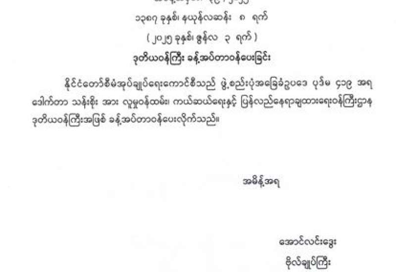 ဒုတိယဝန်ကြီး ခန့်အပ်တာဝန်ပေးခြင်း
