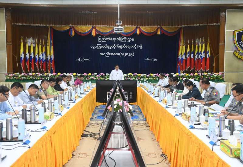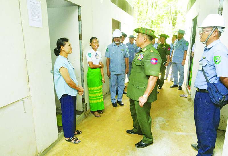 နိုင်ငံတော်စီမံအုပ်ချုပ်ရေးကောင်စီအဖွဲ့ဝင် နယ်စပ်ရေးရာဝန်ကြီးဌာန ပြည်ထောင်စုဝန်ကြီး ဒုတိယဗိုလ်ချုပ်ကြီး ရာပြည့်သည် ဒုတိယဝန်ကြီး ဗိုလ်ချုပ်ဖြိုးသန့်၊ အမြဲတမ်းအတွင်းဝန်၊ ဌာနဆိုင်ရာ တာဝန်ရှိသူများနှင့်အတူ ယနေ့နံနက်ပိုင်းတွင် ငလျင်ဒဏ်ထိခိုက်ခံစားခဲ့ရသည့် ဝန်ထမ်းများနှင့် ဝန်ထမ်းမိသားစုများအား ရာနှုန်းပြည့် တည်ဆောက်ပြီးစီးခဲ့သည့် ယာယီဘာရှာအဆောက်အအုံများသို့ အပြီးသတ်ပြောင်းရွှေ့နေရာချထားမှုကို ကြည့်ရှုစစ်ဆေးသည်။