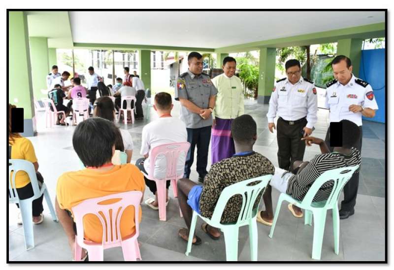 ထိုင်းနိုင်ငံအပါအဝင် အိမ်နီးချင်းနိုင်ငံအချို့ကို တစ်ဆင့်ခံဖြတ်သန်း၍ မြန်မာနိုင်ငံအတွင်းသို့ နယ်စပ်လမ်းကြောင်းများမှတစ်ဆင့် တရားမဝင် ဝင်ရောက်လာပြီး ကရင်ပြည်နယ်၊ မြဝတီမြို့- မဲ့ထော်သလေး (KK Park) နယ်မြေတွင် အွန်လိုင်းလောင်းကစားမှုများ၊ အွန်လိုင်းလိမ်လည်မှုများ၊ ဒုစရိုက်မှုများ ကျူးလွန်ခဲ့ကြသည့် ဖိလစ်ပိုင်နိုင်ငံသား ၁၀ ဦးနှင့် ဂါနာနိုင်ငံသား နှစ်ဦး၊ စုစုပေါင်း ၁၂ ဦးကို ယနေ့တွင် ထပ်မံစစ်ဆေးဖော်ထုတ်ထိန်းသိမ်းနိုင်ခဲ့သည်။