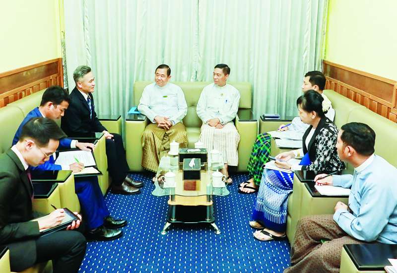 အမျိုးသားသဘာဝဘေးအန္တရာယ်ဆိုင်ရာ စီမံခန့်ခွဲမှုကော်မတီ ဒုတိယဥက္ကဋ္ဌ (၁) ပြည်ထဲရေးဝန်ကြီးဌာန ပြည်ထောင်စုဝန်ကြီး ဒုတိယဗိုလ်ချုပ်ကြီး ထွန်းထွန်းနောင်နှင့် ဒုတိယဥက္ကဋ္ဌ (၂) လူမှုဝန်ထမ်း၊ ကယ်ဆယ်ရေးနှင့် ပြန်လည်နေရာချထားရေးဝန်ကြီးဌာန ပြည်ထောင်စုဝန်ကြီး ဒေါက်တာစိုးဝင်းတို့သည် ယနေ့မွန်းလွဲပိုင်းတွင် မြန်မာနိုင်ငံဆိုင်ရာ ထိုင်းသံအမတ်ကြီး မစ္စတာမုံခွန်းဝိစစ်စတန်အား လူမှုဝန်ထမ်း၊ ကယ်ဆယ်ရေးနှင့် ပြန်လည်နေရာချထားရေးဝန်ကြီးဌာနရှိ သဘာဝဘေးအန္တရာယ်ဆိုင်ရာ စီမံခန့်ခွဲမှုဗဟိုဌာန (Disaster Management Centre) ဧည့်ခန်း၌ လက်ခံတွေ့ဆုံသည်။
