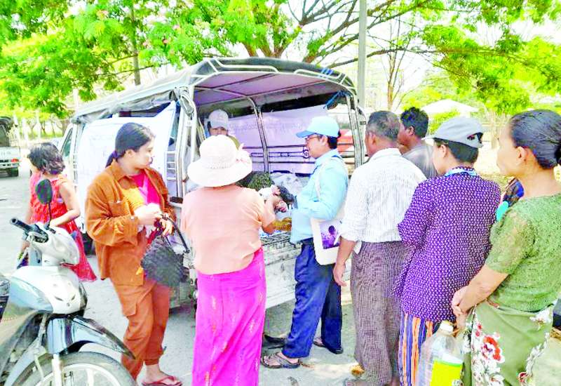 စီးပွားရေးနှင့်ကူးသန်းရောင်းဝယ်ရေးဝန်ကြီးဌာနနှင့် မြန်မာနိုင်ငံ ကုန်သည်များနှင့် စက်မှုလက်မှုလုပ်ငန်းရှင်များအသင်းချုပ်(UMFCCI)တို့၏ စီစဉ်မှု ဖြင့် ဆန်၊ ဆီ၊ ပဲ၊ ဆား၊ ငါးပိနှင့် ကုန်မျိုးစုံဈေးကားများသည် ပြည်ထောင်စုနယ်မြေ နေပြည်တော်အတွင်း ငလျင်ဒဏ်သင့်ဝန်ထမ်းအိမ်ရာများသို့ မတ် ၃၀ ရက် မှစ၍ အိမ်တိုင်ရာရောက်သွားရောက်ကာ သက်သာသောဈေးနှုန်းများဖြင့် ရောင်းချပေးလျက်ရှိပြီး ယနေ့တွင် ၁၆ ရက်မြောက်နေ့အဖြစ်ဈေးကား ခုနစ်စီးဖြင့် လှည့်လည်ရောင်းချပေးကြောင်း သိရသည်။