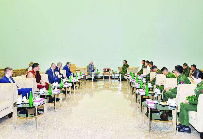 ပြည်သူ့ဆက်ဆံရေးနှင့်စိတ်ဓာတ်စစ်ဆင်ရေးညွှန်ကြားရေးမှူးရုံး ညွှန်ကြားရေးမှူး ဗိုလ်ချုပ် ဇော်မင်းထွန်းသည် ရုရှားဖက်ဒရေးရှင်းနိုင်ငံမှ ရုရှားကာကွယ်ရေးဝန်ကြီးဌာန ပြည်သူ့ရေးရာကောင်စီဥက္ကဋ္ဌ Mr. Pavel Nikoleaevich GUSEV ဦးဆောင်သော ကိုယ်စားလှယ်အဖွဲအား ယနေ့နံနက်ပိုင်းတွင် တပ်မတော်စစ်သမိုင်းပြတိုက် (နေပြည်တော်) အစည်းအဝေးခန်းမ၌ လက်ခံတွေ့ဆုံသည်။