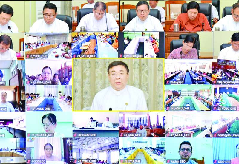 ပညာရေးဝန်ကြီးဌာန ပြည်ထောင်စုဝန်ကြီး ဒေါက်တာညွန့်ဖေသည် ယနေ့နံနက်ပိုင်းတွင် နေပြည်တော် ပညာရေးဝန်ကြီးဌာန ရုံးအမှတ် (၁၃) ရှိ အစည်းအဝေးခန်းမ၌ တက္ကသိုလ်ပါမောက္ခချုပ်များ၊ ပညာရေးဒီဂရီကောလိပ်ကျောင်းအုပ်ကြီးများ၊ တိုင်းဒေသကြီး၊ ပြည်နယ်ပညာရေးမှူးများနှင့် တွေ့ဆုံသည်။