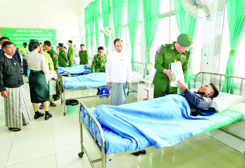 ၂၀၂၅ ခုနှစ်၊ မတ်လ ၂၇ ရက်နေ့တွင်ကျရောက်သည့် နှစ် (၈၀) ပြည့် တပ်မတော်နေ့ စစ်ရေးပြအခမ်းအနားတက်ရောက်ရန် နေပြည်တော်ရှိ ဘုရင့်နောင်ရိပ်သာ၌ ခေတ္တတည်းခိုနေထိုင်လျက်ရှိသည့် တပ်မတော်တွင် တာဝန်ထမ်းဆောင်ခဲ့သော အငြိမ်းစားတပ်မတော်အရာရှိကြီးများနှင့်ဇနီးများအား ယနေ့နံနက်ပိုင်းတွင် နိုင်ငံတော်စီမံအုပ်ချုပ်ရေးကောင်စီဥက္ကဋ္ဌ တပ်မတော်ကာကွယ်ရေးဦးစီးချုပ် ဗိုလ်ချုပ်မှူးကြီး မင်းအောင်လှိုင်နှင့် ဇနီးဒေါ်ကြူကြူလှတို့က သွားရောက်၍တွေ့ဆုံဂါရဝပြုနှုတ်ဆက်သည်။