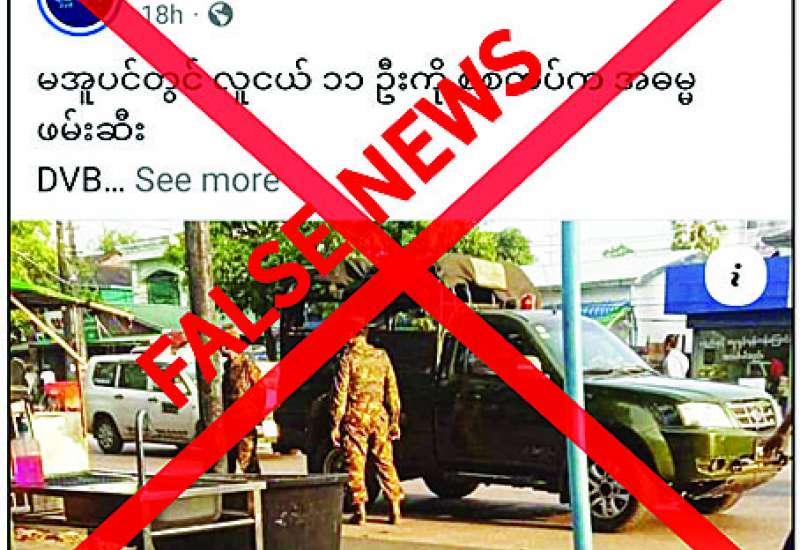 ဧရာဝတီတိုင်းဒေသကြီး မအူပင်မြို့နယ်၌ ပြည်သူ့စစ်မှုထမ်းဆောင်ရန်အတွက် လူငယ်များကို အဓမ္မဖမ်းဆီးနေကြောင်း တရားမဝင်ပြည်ဖျက်မီဒီယာများက သတင်းတု၊ သတင်းအမှားများ မဟုတ်မမှန် လုပ်ကြံရေးသားပြီး လှုံ့ဆော်ဝါဒဖြန့်ဝေလျက်ရှိသည်ကို တွေ့ရှိရသည်။