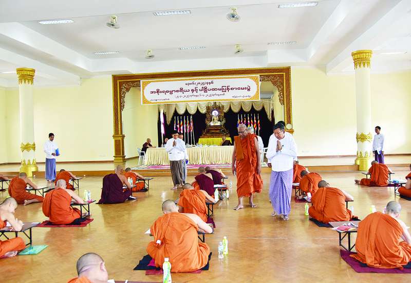 သာသနာရေးနှင့်ယဉ်ကျေးမှုဝန်ကြီးဌာန ပြည်ထောင်စုဝန်ကြီး ဦးတင်ဦးလွင်သည် နေပြည်တော်ကောင်စီဝင် ဦးမြင့်စိုးနှင့်အတူ ယနေ့မွန်းလွဲပိုင်းတွင် ပြည်ထောင်စုနယ်မြေ နေပြည်တော် ပျဉ်းမနားမြို့ မင်္ဂလာဗျူဟာသာသနာ့ဗိမာန်၌ အစိုးရဓမ္မာစရိယစာမေးပွဲဖြေဆိုလျက်ရှိသော သံဃာတော်များနှင့် သီလရှင်များကို သွားရောက်ဖူးမြော်ကြည်ညိုသည်။