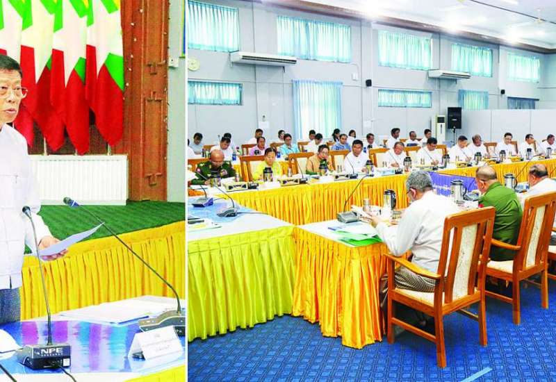 နိုင်ငံတော်စီမံအုပ်ချုပ်ရေးကောင်စီအစည်းအဝေးကို ယနေ့နံနက်ပိုင်းတွင် နေပြည်တော်ရှိ နိုင်ငံတော်စီမံအုပ်ချုပ်ရေးကောင်စီဥက္ကဋ္ဌရုံး အစည်းအဝေးခန်းမ၌ ကျင်းပပြုလုပ်ရာ နိုင်ငံတော်စီမံအုပ်ချုပ်ရေးကောင်စီဥက္ကဋ္ဌ နိုင်ငံတော်ဝန်ကြီးချုပ် ဗိုလ်ချုပ်မှူးကြီး မင်းအောင်လှိုင် တက်ရောက်အမှာစကားပြောကြားသည်။
