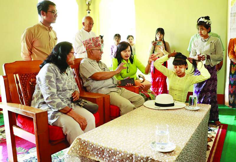 မတ် ၂၁ ရက်က နေပြည်တော်၌ကျင်းပသော ၂၀၂၅ အလွန် ဗဟုဝင်ရိုးကမ္ဘာတွင် မြန်မာနိုင်ငံကြုံတွေ့လာရမည့် စိန်ခေါ်မှုများနှင့် အခွင့်အလမ်းများ သုံးသပ်ဆွေးနွေးပွဲ တက်ရောက်ခဲ့သည့် နီပေါနိုင်ငံဝန်ကြီးချုပ်ဟောင်း Mr.Madhav Kumar Nepal နှင့်အဖွဲ့သည် ယနေ့နံနက် ၉ နာရီခွဲတွင် နေပြည်တော်မှ ပုဂံ-ညောင်ဦး လေဆိပ်သို့ရောက်ရှိလာရာ ညောင်ဦးခရိုင် စီမံအုပ်ချုပ်ရေးအဖွဲ့ဥက္ကဋ္ဌနှင့် ခရိုင်စီမံအုပ်ချုပ်ရေးအဖွဲ့ဝင်များ၊ ညောင်ဦးမြို့နယ်စီမံအုပ် ချုပ်ရေးအဖွဲ့ဥက္ကဋ္ဌနှင့် မြို့နယ်စီမံအုပ်ချုပ်ရေးအဖွဲ့ဝင်များက ကြိုဆိုကြသည်။