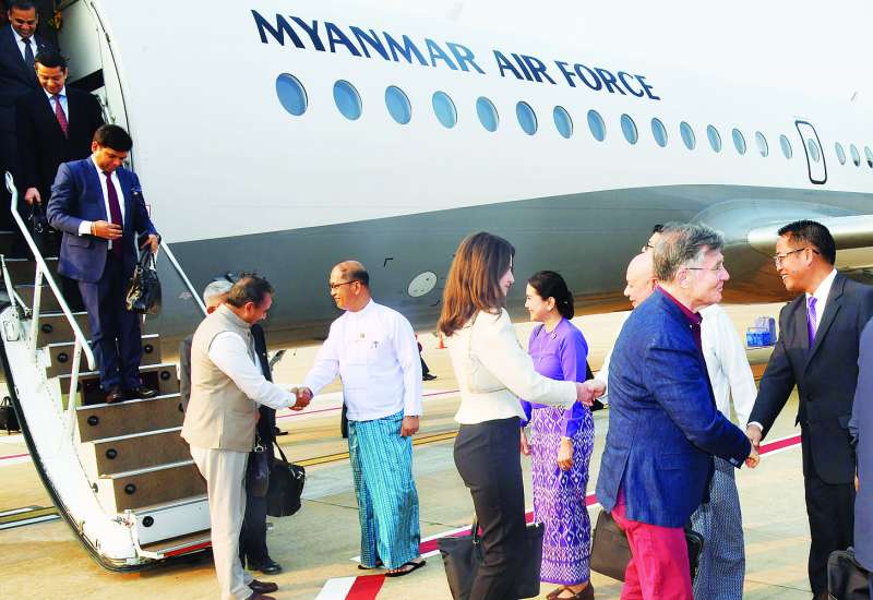 ဧပြီ ၁၀ ရက်တွင် ကျင်းပပြုလုပ်မည့် နိုင်ငံတော်သမ္မတသစ် ကတိသစ္စာပြုခြင်းနှင့် စတင်တာဝန်ယူခြင်းအခမ်းအနားသို့တက်ရောက်မည့် ပြည်ပနိုင်ငံအစိုးရကိုယ်စားလှယ်များသည် နေပြည်တော်သို့ အထူးလေယာဉ်ဖြင့် ယနေ့ညနေပိုင်းတွင် ရောက်ရှိကြသည်။ ယင်းကိုယ်စားလှယ်များကို နေပြည်တော် တပ်မတော်လေဆိပ်၌ နိုင်ငံခြားရေးဝန်ကြီးဌာန၊ ဒုတိယဝန်ကြီးနှင့် တာဝန်ရှိသူများက ကြိုဆိုခဲ့ကြသည်။