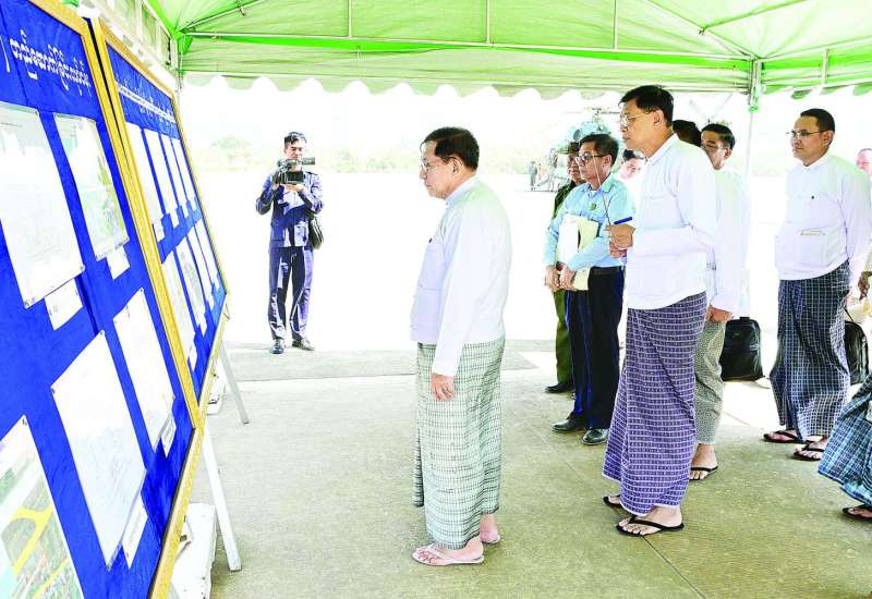 ဆောက်လုပ်ရေးဝန်ကြီးဌာန ဒုတိယဝန်ကြီး ဦးမျိုးမြင့်သည် ဌာနဆိုင်ရာတာဝန်ရှိသူများနှင့်အတူ ယနေ့တွင် ရှမ်းပြည်နယ် (တောင်ပိုင်း) အတွင်းရှိ အဆောက်အဦဦးစီးဌာနမှ တာဝန်ယူတည်ဆောက်လျက်ရှိသည့် တည်ဆောက်ရေးလုပ်ငန်းများကို ကြည့်ရှုစစ်ဆေးသည်။