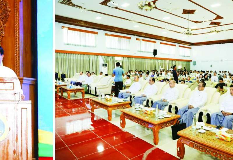 ဒစ်ဂျစ်တယ်မြန်မာ နည်းပညာနှီးနှောဖလှယ်ပွဲနှင့် ပြပွဲအခမ်းအနားကို ယနေ့ နေ့လယ်ပိုင်းတွင် ပြင်ဦးလွင်မြို့၊ ရတနာပုံမြို့သစ်စီမံကိန်းရှိ ရတနာပုံတယ်လီပို့အဆောက်အဦ၌ ကျင်းပပြုလုပ်ရာ ပြည်ထောင်စုသမ္မတမြန်မာနိုင်ငံတော် ယာယီသမ္မတ နိုင်ငံတော်လုံခြုံရေးနှင့်အေးချမ်းသာယာရေးကော်မရှင်ဥက္ကဋ္ဌ ဗိုလ်ချုပ်မှူးကြီး မင်းအောင်လှိုင် တက်ရောက်ဖွင့်လှစ်ပေးပြီး အမှာစကားပြောကြားသည်။