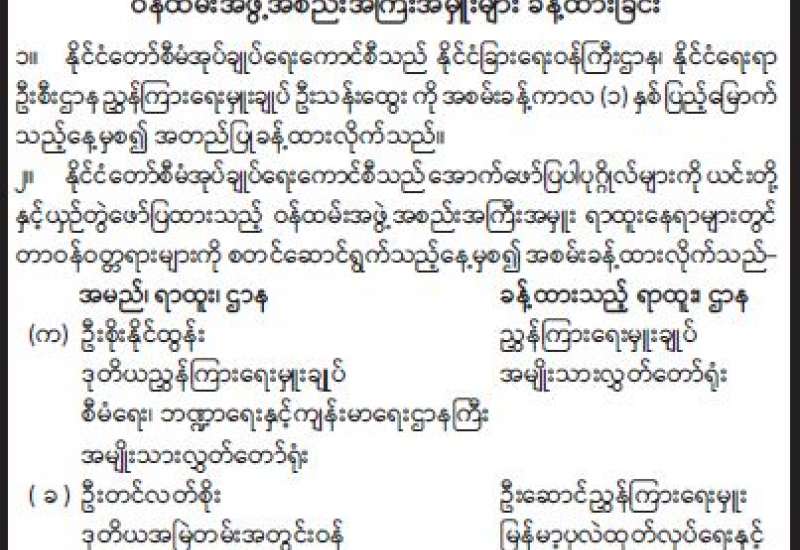 ဝန်ထမ်းအဖွဲ့အစည်းအကြီးအမှူး အတည်ပြုခန့်ထားခြင်းနှင့် ဝန်ထမ်းအဖွဲ့အစည်းအကြီးအမှူးများ ခန့်ထားခြင်း