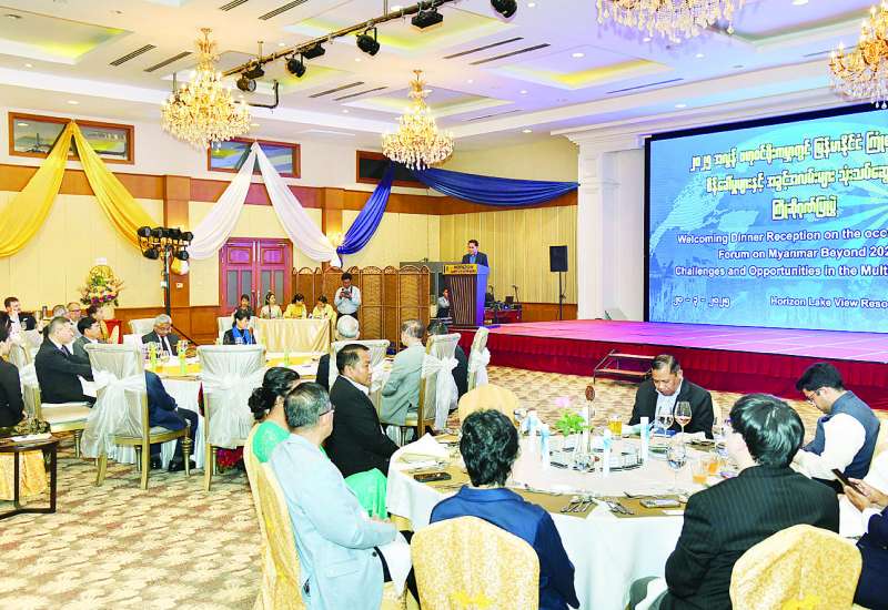 ပြန်ကြားရေးဝန်ကြီးဌာန ပြည်ထောင်စုဝန်ကြီး ဦးမောင်မောင်အုန်းသည် ပြန်ကြားရေးဝန်ကြီးဌာနက ကြီးမှူး၍ မြန်မာ့ပုံရိပ်ဖော်ညွှန်းရေးအဖွဲ့ (Myanmar Narrative Think Tank) က စီစဉ်ကျင်းပသည့် “၂၀၂၅ အလွန် ဗဟုဝင်ရိုးကမ္ဘာတွင် မြန်မာနိုင်ငံကြုံတွေ့လာရမည့် စိန်ခေါ်မှုများနှင့် အခွင့်အလမ်းများ” သုံးသပ်ဆွေးနွေးပွဲသို့ တက်ရောက်လာကြသော နိုင်ငံတကာမှ ပထဝီစီးပွားရေးနှင့် ပထဝီနိုင်ငံရေးဆိုင်ရာ ကျွမ်းကျင်ပညာရှင်များ၊ လေ့လာသုံးသပ်သူများအား ယနေ့ညနေပိုင်းတွင် နေပြည်တော်ရှိ Horizon Lakeview Resort ၌ ညစာဖြင့် တည်ခင်းဧည့်ခံသည်။