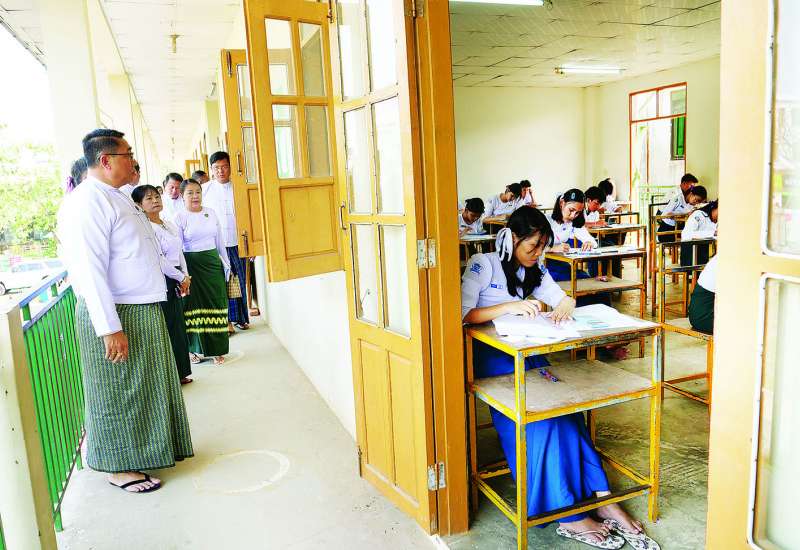 ပညာရေးဝန်ကြီးဌာန ဒုတိယဝန်ကြီး ဦးနေမျိုးလှိုင်သည် မွန်ပြည်နယ် လူမှုရေးရာဝန်ကြီး ဦးစောကြည်နိုင်၊ တာဝန်ရှိသူများနှင့်အတူ ယနေ့နံနက်ပိုင်းတွင် မော်လမြိုင်မြို့ ရွှေနတ်တောင်အခြေခံပညာအထက်တန်းကျောင်း၊ အမှတ် (၁၁) အခြေခံပညာအထက်တန်းကျောင်းနှင့် အမှတ် (၁၂) အခြေခံပညာအထက်တန်းကျောင်းရှိ စာစစ်ဌာနများသို့ သွားရောက်၍ စာမေးပွဲဆိုင်ရာ လုပ်ငန်းဆောင်ရွက်မှုများကို ကြည့်ရှုစစ်ဆေးသည်။