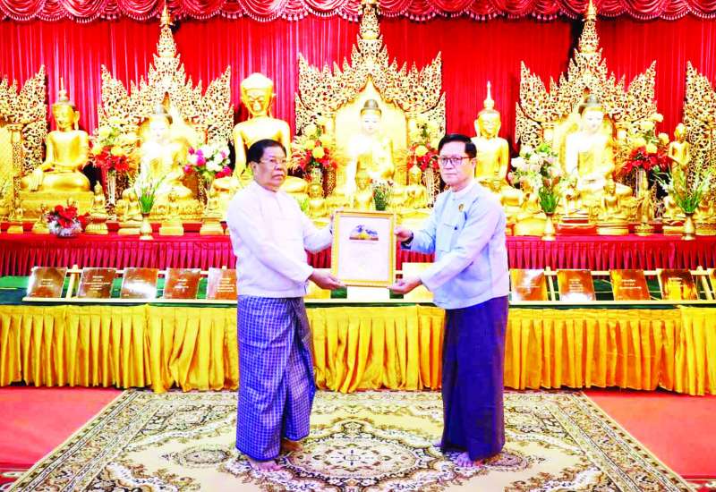 နိုင်ငံခြားရေးဝန်ကြီးဌာနနှင့် ပြည်ပရှိမြန်မာသံရုံး၊ မြန်မာအဖွဲ့ရုံး၊ မြန်မာကောင်စစ်ဝန်ချုပ်ရုံးများ၏ ဝန်ထမ်းများနှင့် မိသားစုဝင်များက ရွှေတိဂုံစေတီတော်မြတ်ကြီးအား ကပ်လှူသည့် ရွှေပြားသင်္ကန်းတော်ခြောက်ကျပ်သား နှစ်ချပ်နှင့် တစ်ကျပ်သား ၁၃ ချပ်တို့အတွက် အလှူငွေကျပ် ၆၂,၅၀၀,၀၀၀/- (ကျပ်ခြောက်ရာနှစ်ဆယ့်ငါးသိန်းတိတိ) ကို ဒုတိယဝန်ကြီးချုပ်နှင့် နိုင်ငံခြားရေးဝန်ကြီးဌာန ပြည်ထောင်စုဝန်ကြီး ဦးသန်းဆွေက ရွှေတိဂုံစေတီတော်ဂေါပကအဖွဲ့ထံ ပေးအပ်လှူဒါန်းသည့် အခမ်းအနားကို ယနေ့နံနက် ၈ နာရီတွင် ရွှေတိဂုံစေတီတော်တောင်ဘက်မုခ်ရှိ ရှေးဟောင်းတန်ဆောင်း၌ ကျင်းပသည်။