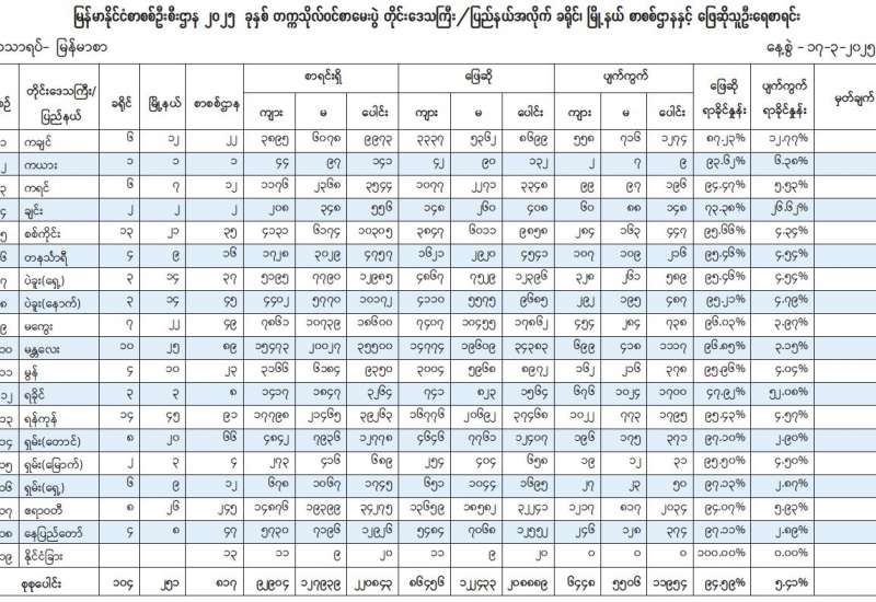 ၂၀၂၅ ခုနှစ် တက္ကသိုလ်ဝင်စာမေးပွဲ ပထမနေ့ကို ယနေ့နံနက်ပိုင်းက စတင်ကျင်းပရာ နိုင်ငံခြားစာစစ်ဌာန အပါအဝင် တစ်နိုင်ငံလုံးအတိုင်းအတာဖြင့် မြန်မာစာဘာသာရပ် လာရောက်ဖြေဆိုသူ စုစုပေါင်း ၂၀၈၈၈၉ ဦးရှိကြောင်း သိရသည်။