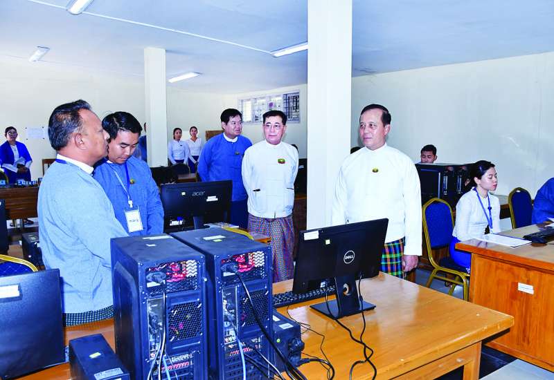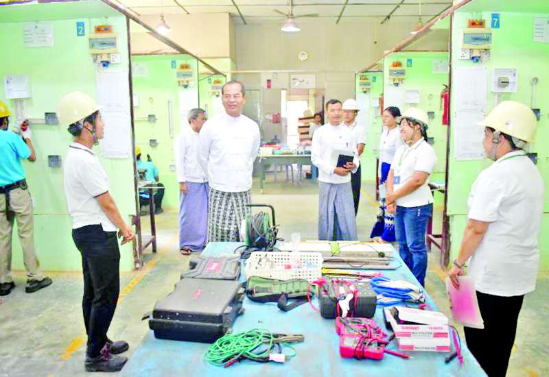 အလုပ်သမားဝန်ကြီးဌာန ဒုတိယဝန်ကြီးဦးဝင်းရှိန်သည် ယနေ့နံနက်ပိုင်းတွင် ရန်ကုန်တိုင်းဒေသကြီး မင်္ဂလာဒုံမြို့နယ်ရှိ Kabar Training Center သို့သွားရောက်၍ ပိုက်ဆက်နှင့် ကျောက်ပုံးရိုက် သင်တန်းများဖွင့်လှစ်ပို့ချနေမှုကို ကြည့်ရှုအားပေးသည်။