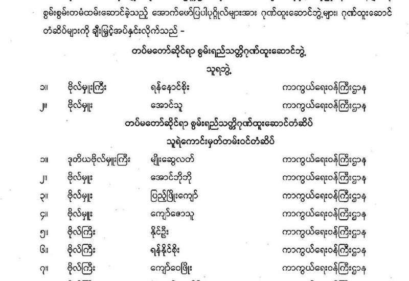 ရန်ကုန်မြို့နှင့် မန္တလေးမြို့အတွက် ရည်ညွှန်းလက်ကားဈေးနှုန်းများနှင့် ပြည်ထောင်စုနယ်မြေ နေပြည်တော်၊ တိုင်းဒေသကြီး/ပြည်နယ် မြို့တော်များအတွက် ရည်ညွှန်းလက်လီဈေးနှုန်းများ