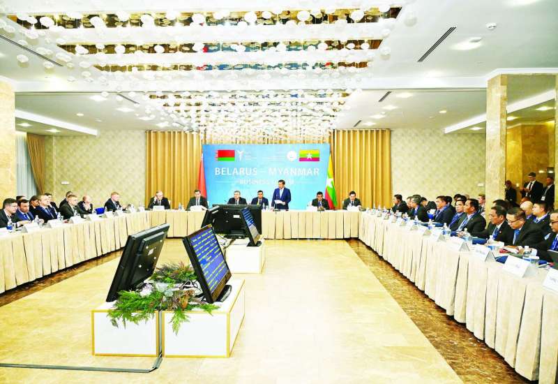 မြန်မာ-ဘယ်လာရုစ် စီးပွားရေးဖိုရမ်အား မတ် ၆ ရက် ဒေသစံတော်ချိန်ညနေပိုင်းတွင် မင့်စ်မြို့ President ဟိုတယ်၌ ကျင်းပပြုလုပ်ရာ နိုင်ငံတော်စီမံအုပ်ချုပ်ရေးကောင်စီဥက္ကဋ္ဌ နိုင်ငံတော်ဝန်ကြီးချုပ် ဗိုလ်ချုပ်မှူးကြီး မင်းအောင်လှိုင် တက်ရောက်၍ အဖွင့်အမှာစကားပြောကြားသည်။