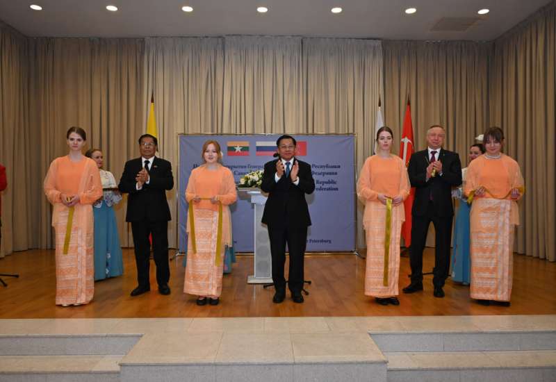 ရုရှားဖက်ဒရေးရှင်းနိုင်ငံ စိန့်ပီတာစဘတ်မြို့၌ တရားဝင်ချစ်ကြည်ရေးခရီးရောက်ရှိနေသည့် နိုင်ငံတော်စီမံအုပ်ချုပ်ရေးကောင်စီဥက္ကဋ္ဌ နိုင်ငံတော်ဝန်ကြီးချုပ် ဗိုလ်ချုပ်မှူးကြီး မင်းအောင်လှိုင်သည် ရုရှားဖက်ဒရေးရှင်းနိုင်ငံ စိန့်ပီတာစဘတ်မြို့ မြန်မာကောင်စစ်ဝန်ချုပ်ရုံး ဝန်ထမ်းမိသားစုများအား ဒေသစံတော်ချိန် ယနေ့နံနက်ပိုင်းတွင် မြန်မာကောင်စစ်ဝန်ချုပ်ရုံး၌ တွေ့ဆုံအမှာစကားပြောကြားသည်။