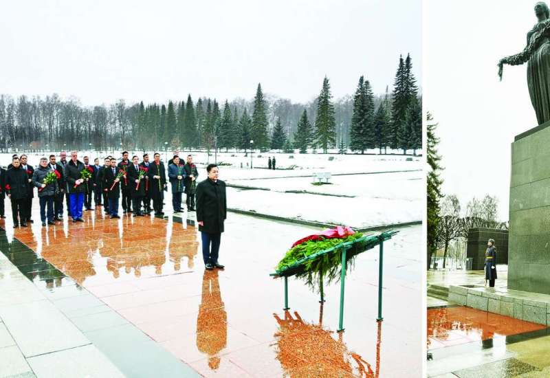 ရုရှားဖက်ဒရေးရှင်းနိုင်ငံ စိန့်ပီတာစဘတ်မြို့၌ တရားဝင်ချစ်ကြည်ရေးခရီးရောက်ရှိနေသည့် နိုင်ငံတော်စီမံအုပ်ချုပ်ရေးကောင်စီဥက္ကဋ္ဌ နိုင်ငံတော်ဝန်ကြီးချုပ် ဗိုလ်ချုပ်မှူးကြီး မင်းအောင်လှိုင်သည် ယနေ့ ဒေသစံတော်ချိန်နံနက်ပိုင်းတွင် စိန့်ပီတာစဘတ်မြို့ရှိ Piskaryovskoye Memorial Cemetery ၌ လွမ်းသူ့ပန်းခွေချ အလေးပြုသည်။