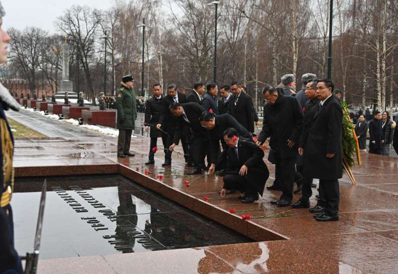 ရုရှားဖက်ဒရေးရှင်းနိုင်ငံ၊ မော်စကိုမြို့သို့ တရားဝင်ချစ်ကြည်ရေးခရီးရောက်ရှိနေသည့် နိုင်ငံတော်စီမံအုပ်ချုပ်ရေးကောင်စီဥက္ကဋ္ဌ နိုင်ငံတော်ဝန်ကြီးချုပ် ဗိုလ်ချုပ်မှူးကြီး မင်းအောင်လှိုင်သည် ယနေ့နံနက်ပိုင်းတွင် မော်စကိုမြို့ရှိ အညတရစစ်သည်ဂူဗိမာန်၌ လွမ်းသူပန်းခွေချအလေးပြုသည်။