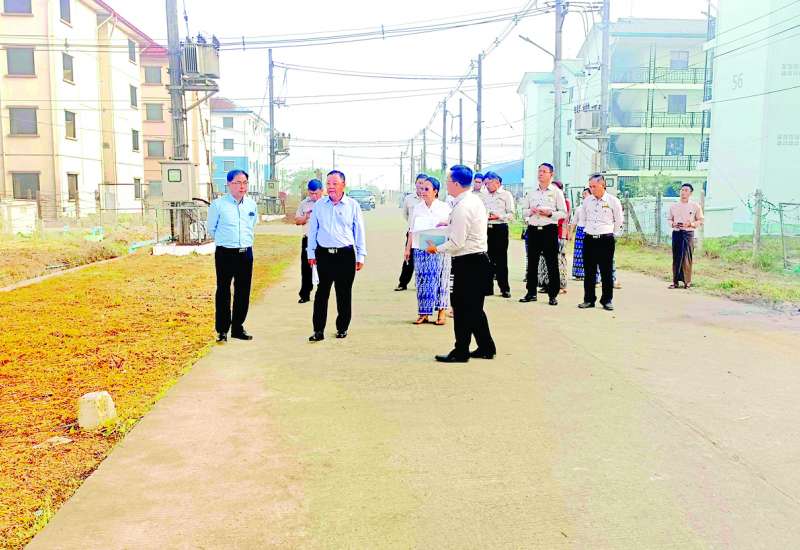 ဆောက်လုပ်ရေးဝန်ကြီးဌာန ဒုတိယဝန်ကြီး ဦးဝင်းဖေသည် မြို့ပြနှင့်အိမ်ရာဖွံ့ဖြိုးရေးဦးစီးဌာန ညွှန်ကြားရေးမှူးချုပ် ဦးအောင်ကျော်စိုးနှင့်အတူ ယနေ့နံနက်ပိုင်းတွင် ရန်ကုန်တိုင်းဒေသကြီး ဒဂုံမြို့သစ် (ဆိပ်ကမ်း) မြို့နယ်ရှိ ရိုးမရိပ်သာအိမ်ရာအဆောက်အအုံ ၃၅ လုံး ပြင်ဆင်ဆောင်ရွက်နေမှုအခြေအနေများကို ကြည့်ရှုစစ်ဆေးပြီး ဒုတိယဝန်ကြီးက အိမ်ရာဝင်းလုံခြုံရေး ဆောင်ရွက်ထားရန်၊ သတ်မှတ်ရက်အမီပြီးစီးစေရေး၊ နေထိုင်သူပြည်သူများ၏ လိုအပ်ချက်များကို ထည့်သွင်းစဉ်းစားဆောင်ရွက်ပေးရန်နှင့် Cover Market အချိန်မီဖွင့်လှစ်နိုင်ရေး စီမံဆောင်ရွက်သွားရန်လိုကြောင်း မှာကြားသည်။