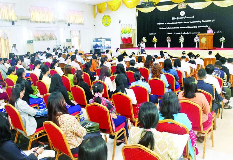 မြန်မာနိုင်ငံစာရင်းကောင်စီမှ ကြီးမှူး၍ ပြည်ထောင်စုစာရင်းစစ်ချုပ်ရုံး အဆင့်မြင့်စာရင်းကိုင်နှင့် စာရင်းစစ်သင်တန်းကျောင်း နေပြည်တော်တွင် ဖွင့်လှစ်သည့် နိုင်ငံပိုင်ကဏ္ဍအတွက် နိုင်ငံတကာစာရင်းစံများဒီပလိုမာသင်တန်း အမှတ်စဉ် (၂) အပိုင်း (၁) (Diploma in International Public Sector Accounting Standards - Dip IPSAS) နှင့် နိုင်ငံတကာဘဏ္ဍာရေးအစီရင်ခံခြင်း စံများဆိုင်ရာဒီပလိုမာသင်တန်း (Diploma in Inter-national Financial Reporting Standards-Dip IFRS) အမှတ်စဉ် (၂) အပိုင်း (၁) သင်တန်းဖွင့်ပွဲအခမ်းအနားကို ယနေ့နံနက် ၉ နာရီခွဲတွင် နေပြည်တော်ရှိ ပြည်ထောင်စုစာရင်းစစ်ချုပ်ရုံး နဝရတ်ခန်းမ၌ Hybrid စနစ်ဖြင့် ကျင်းပသည်။