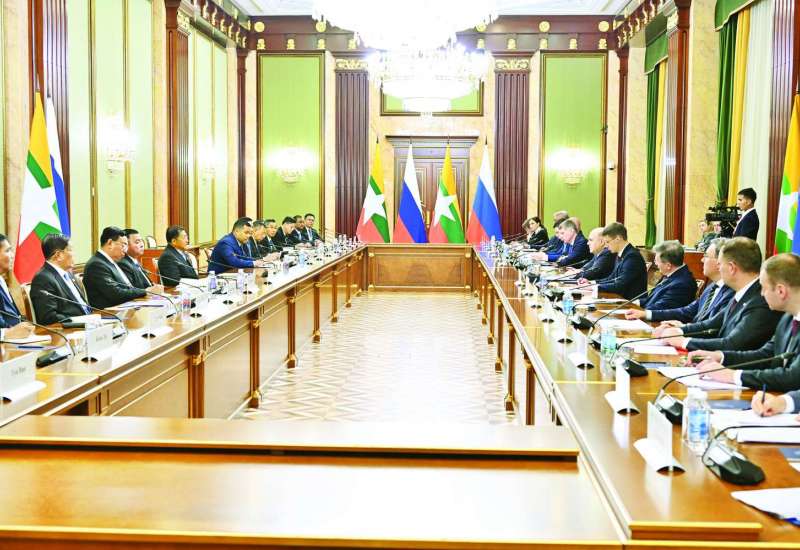 ရုရှားဖက်ဒရေးရှင်းနိုင်ငံသမ္မတ H.E. Vladimir Vladimirovich Putin ၏ ဖိတ်ကြားချက်အရ ရုရှားဖက်ဒရေးရှင်းနိုင်ငံသို့ တရားဝင်ချစ်ကြည်ရေးခရီးရောက်ရှိနေသည့် နိုင်ငံတော်စီမံအုပ်ချုပ်ရေးကောင်စီဥက္ကဋ္ဌ နိုင်ငံတော်ဝန်ကြီးချုပ် ဗိုလ်ချုပ်မှူးကြီး မင်းအောင်လှိုင်သည် ယနေ့ဒေသစံတော်ချိန် ညနေပိုင်းတွင် မော်စကိုမြို့၊ ကရင်မလင်နန်းတော်၌ ရုရှားဖက်ဒရေးရှင်းနိုင်ငံသမ္မတ H.E. Vladimir Vladimirovich Putin နှင့် သီးခြားတွေ့ဆုံဆွေးနွေးသည်။