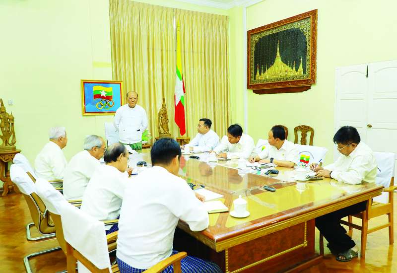 အားကစားနှင့်လူငယ်ရေးရာဝန်ကြီးဌာန ပြည်ထောင်စုဝန်ကြီး Jeng Phang နော်တောင်သည် မြန်မာနိုင်ငံမြင်းစီးအားကစားအဖွဲ့ချုပ်ဥက္ကဋ္ဌ ဦးပြုံးမောင်မောင်နှင့် အဖွဲ့အား ယနေ့မွန်းလွဲပိုင်းတွင် နေပြည်တော်ရုံးအမှတ်(၃၁)ရှိ ဧည့်ခန်းမ၌ လက်ခံတွေ့ဆုံသည်။