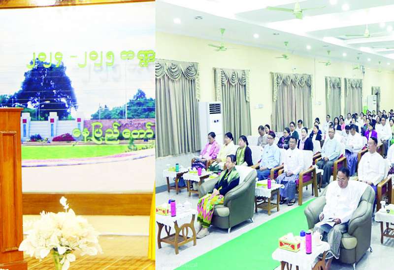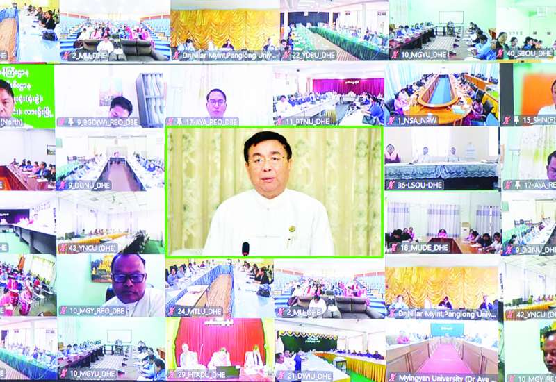 ပညာရေးဝန်ကြီးဌာန ပြည်ထောင်စုဝန်ကြီး ဒေါက်တာညွန့်ဖေနှင့် တက္ကသိုလ်ပါမောက္ခချုပ်များ၊ ပါမောက္ခများ၊ တိုင်းဒေသကြီးနှင့် ပြည်နယ်ပညာရေးမှူးများတွေ့ဆုံပွဲကို ယနေ့နံနက်ပိုင်းတွင် နေပြည်တော်ပညာရေးဝန်ကြီးဌာန ရုံးအမှတ်(၁၃)ရှိ အစည်းအဝေးခန်းမ၌ ကျင်းပသည်။