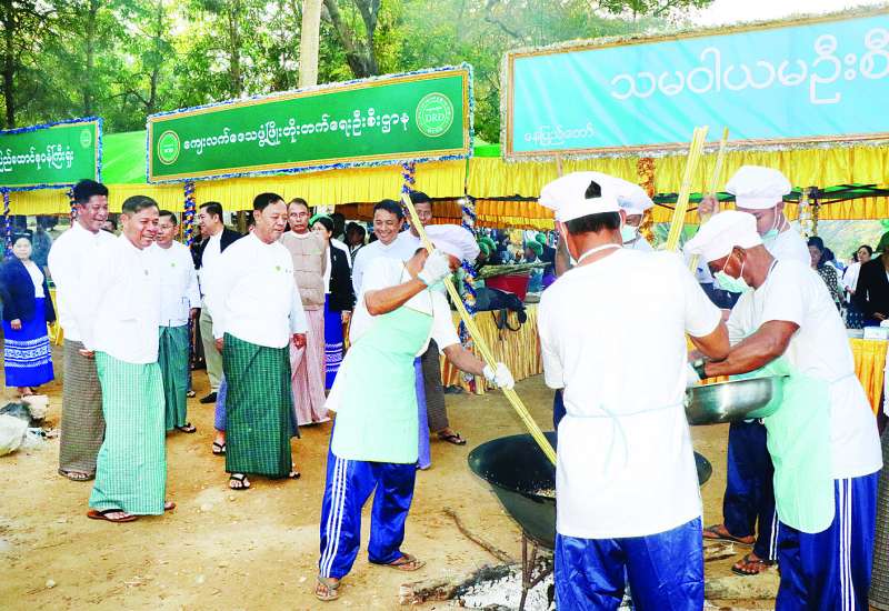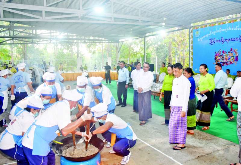 (၇၈)နှစ်မြောက် ပြည်ထောင်စုနေ့ကို ဂုဏ်ပြုသောအားဖြင့် သမဝါယမနှင့် ကျေးလက်ဖွံ့ဖြိုးရေးဝန်ကြီးဌာန ဝန်ထမ်းမိသားစုများ၏ စတုတ္ထအကြိမ် မြန်မာ့ရိုးရာထမနဲထိုးပြိုင်ပွဲကို ယနေ့နံနက်ပိုင်းတွင် အဆိုပါဝန်ကြီးဌာန၌ကျင်းပရာ ပြည်ထောင်စုဝန်ကြီး ဦးလှမိုး၊ ဒုတိယဝန်ကြီး ဦးမြင့်စိုးနှင့် တာဝန်ရှိသူများ၊ ပြိုင်ပွဲဝင်အသင်းများနှင့် အရာထမ်းအမှုထမ်းများ ပျော်ရွှင်စွာပါဝင်ဆင်နွှဲကြသည်။