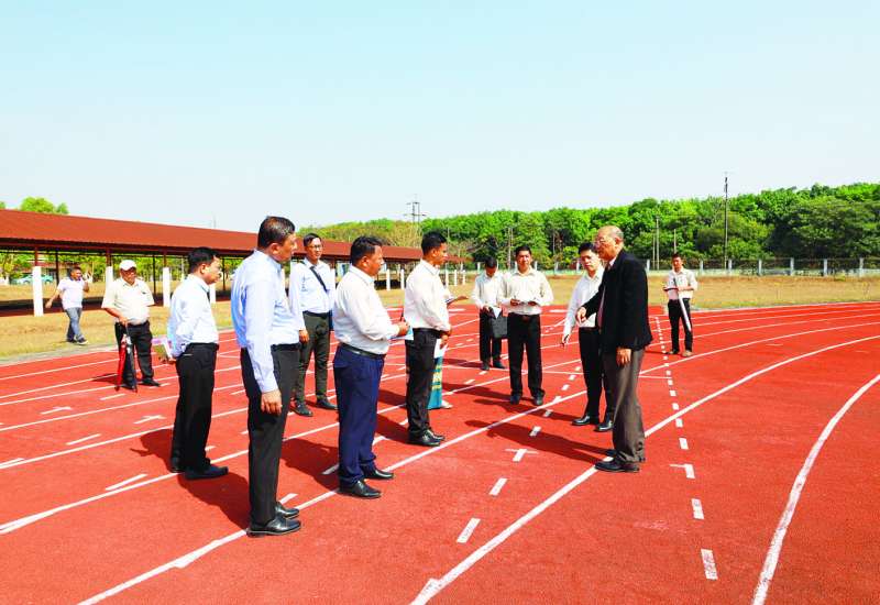မြန်မာနိုင်ငံ အိုလံပစ်ကော်မတီဥက္ကဋ္ဌ၊ အားကစားနှင့်လူငယ်ရေးရာဝန်ကြီးဌာနနှင့် ဟိုတယ်နှင့် ခရီးသွားလာရေးဝန်ကြီးဌာန ပြည်ထောင်စုဝန်ကြီး Jeng Phang နော်တောင်သည် မွန်ပြည်နယ် လူမှုရေးရာဝန်ကြီး၊ တာဝန်ရှိသူများနှင့်အတူ ယနေ့မွန်းလွဲပိုင်းတွင် မွန်ပြည်နယ် အားကစားဥယျာဉ်ရှိ အားကစားကွင်း၊ အားကစားရုံများနှင့် သုံးထပ်အိပ်ဆောင်၊ စားရိပ်သာ၊ စားဖိုဆောင်၊ ဝန်ထမ်းအိမ်ရာများနှင့် တည်ဆောက်လျက်ရှိသည့် မိုးလုံလေလုံအားကစားရုံ တည်ဆောက်နေမှုကို လှည့်လည်ကြည့်ရှု စစ်ဆေးသည်။