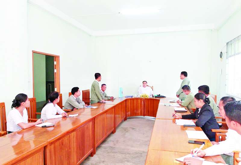 ပြည်ထောင်စုရွေးကောက်ပွဲကော်မရှင်အဖွဲ့ဝင် ဦးအောင်မိုးမြင့်သည် ယနေ့နံနက်ပိုင်းက ရန်ကုန်တိုင်းဒေသကြီးအတွင်း ရခိုင်ပြည်နယ်မှ တွဲဖက်တာဝန်ချထားသည့် ဝန်ထမ်းများအား မြောက်ပိုင်းခရိုင် ရွေးကောက်ပွဲကော်မရှင်အဖွဲ့ခွဲရုံး အစည်းအဝေးခန်းမ၌ တွေ့ဆုံသည်။