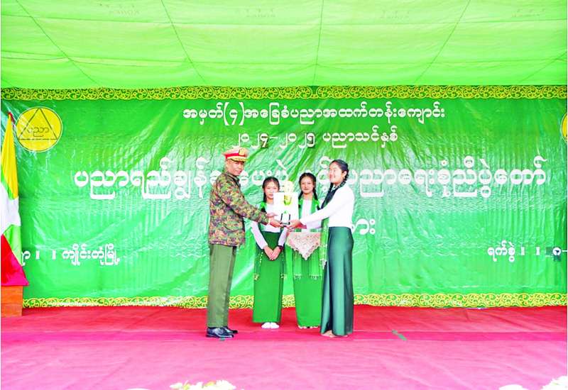 ၂၀၂၄-၂၀၂၅ ပညာသင်နှစ် ပညာရည်ချွန်ဆုပေးပွဲနှင့် ပညာရေးစုံညီပွဲတော်ကို ယနေ့နံနက်ပိုင်းတွင် ရှမ်းပြည်နယ် (အရှေ့ပိုင်း) ကျိုင်းတုံမြို့ရှိ အမှတ် (၄) အခြေခံပညာအထက်တန်းကျောင်း၌ ကျင်းပရာ တြိဂံဒေသတိုင်းစစ်ဌာနချုပ် တိုင်းမှူး ဗိုလ်မှူးချုပ် စိုးလှိုင်နှင့် အဖွဲ့ဝင်များ၊ ပြည်နယ်၊ ခရိုင်၊ မြို့နယ်အဆင့် ဌာနဆိုင်ရာ တာဝန်ရှိသူများ၊ ဆရာ ဆရာမများ၊ ကျောင်းသား ကျောင်းသူများ၊ ကျောင်းသား မိဘများနှင့် ဖိတ်ကြားထားသူများ တက်ရောက်ကြသည်။