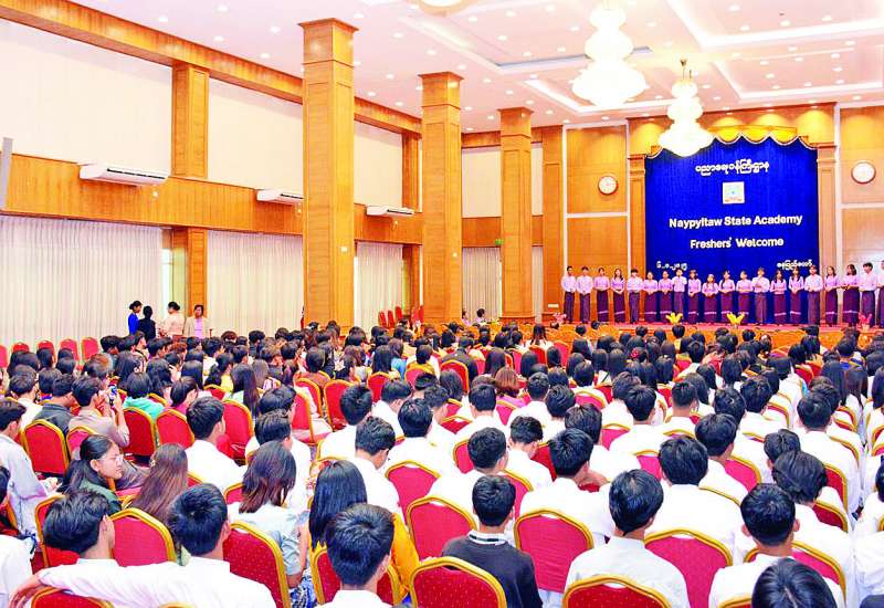 Naypyitaw State Academy ၏ ၂၀၂၄-၂၀၂၅ ပညာသင်နှစ် မောင်မယ်သစ်လွင် ကြိုဆိုပွဲအခမ်းအနားကို ယနေ့မွန်းလွဲ ၁ နာရီတွင် အဆိုပါတက္ကသိုလ်ရှိ ဘက်စုံသုံးခန်းမ၌ ကျင်းပရာ Naypyitaw State Academy ၏ ဒုတိယပါမောက္ခချုပ်များ၊ ပါမောက္ခ (ဌာနမှူး)များ၊ ဆရာ ဆရာမများ၊ ဝိဇ္ဇာ၊ သိပ္ပံ၊ လူမှုရေးပညာအထူးပြုမောင်မယ်သစ်လွင်ကျောင်းသား ကျောင်းသူများ၊ စီးပွားရေး၊ ဥပဒေ၊ အားကစား၊ ဆေးပညာအထူးပြု ကျောင်းသား ကျောင်းသူများနှင့် တာဝန်ရှိသူများ တက်ရောက်သည်။