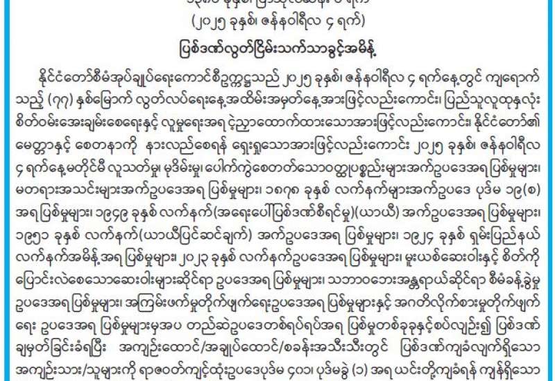 နိုင်ငံတော်အစိုးရမှ အကြမ်းဖက်အုပ်စုအဖြစ် ကြေညာထားသော CRPH ၊ NUG နှင့် ယင်းတို့၏လက်အောက်ခံ PDF အမည်ခံအကြမ်းဖက်အဖွဲ့များ၊ ယင်းတို့နှင့် ပတ်သက်ဆက်နွှယ်နေသောအဖွဲ့အစည်းများနှင့် လူပုဂ္ဂိုလ်များသည် နိုင်ငံတော်တည်ငြိမ်အေးချမ်းရေးကို ပျက်ပြားစေရန်နှင့် ပြည်သူလူထုကို အကြောက်တရားများဖြစ်ပေါ်စေပြီး အစိုးရယန္တရားများ ပျက်ပြားစေရန် ရည်ရွယ်လျက် နိုင်ငံ့ဝန်ထမ်းများအပါအဝင် အပြစ်မဲ့ပြည်သူများအား အဓိကပစ်မှတ်ထား၍ လုပ်ကြံသတ်ဖြတ်ခြင်း၊ အများပြည်သူနှင့် သက်ဆိုင်သောနေရာများအား ဖောက်ခွဲဖျက်ဆီးခြင်း၊ အများပြည်သူပိုင်ပစ္စည်းများအား ဓားပြတိုက်လုယက်ခြင်းစသည့် အကြမ်းဖက်လုပ်ငန်းများကို နည်းမျိုးစုံဖြင့် ပြုလုပ်လျက်ရှိပါသည်။