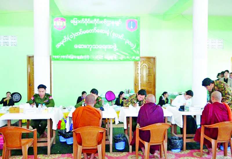 ကချင်ပြည်နယ် မြစ်ကြီးနားမြို့ပေါ်ရှိ သံဃာတော်များအား ယနေ့နံနက်ပိုင်းတွင် မြောက်ပိုင်းတိုင်းစစ်ဌာနချုပ်၊ နယ်လှည့်ဆေးကုသရေးအဖွဲ့က မြစ်ကြီးနားမြို့ရှိ အောင်မြေစံကျောင်းတိုက်အတွင်း၌ ကျန်းမာရေးစောင့်ရှောက်မှုလုပ်ငန်းများ ဆောင်ရွက်ပေးသည်။