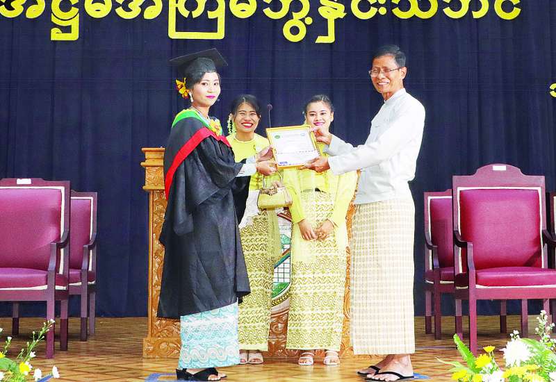 သမဝါယမနှင့်ကျေးလက်ဖွံ့ဖြိုးရေးဝန်ကြီးဌာန၊ သမဝါယမနှင့်စီမံခန့်ခွဲမှုပညာတက္ကသိုလ် (စစ်ကိုင်း) ၏ အဋ္ဌမအကြိမ်မြောက်ဘွဲ့နှင်းသဘင်အခမ်းအနားကို ယမန်နေ့က အဆိုပါတက္ကသိုလ် ဘွဲ့နှင်းသဘင်ခန်းမ၌ကျင်းပရာ ဒုတိယဝန်ကြီးဦးမြင့်စိုး၊ ပါမောက္ခချုပ်ဒေါက်တာမို့မို့ရီ၊ ဒုတိယပါမောက္ခချုပ်၊ ပါမောက္ခဌာနမှူးများ၊ ဆရာဆရာမများ၊ ဖိတ်ကြားထားသည့် ဧည့်သည်တော်များ၊ ဘွဲ့ရကျောင်းသား ကျောင်းသူများနှင့် ၎င်းတို့၏မိဘများတက်ရောက်ကြသည်။