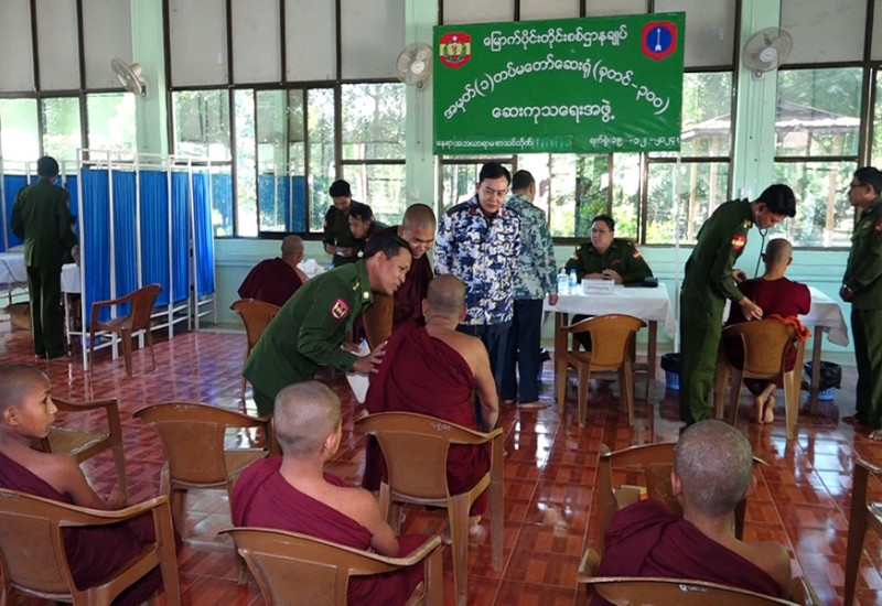 ကချင်ပြည်နယ်၊ မြစ်ကြီးနားမြို့ပေါ်ရှိ သံဃာတော်များအား ယနေ့နံနက်ပိုင်းတွင် မြောက်ပိုင်းတိုင်းစစ်ဌာနချုပ်၊ နယ်လှည့်ဆေးကုသရေးအဖွဲ့က အဆိုပါမြို့ရှိ အဘယာရာမပရိယတ္တိစာသင်တိုက်၌ ကျန်းမာရေးစောင့်ရှောက်မှုလုပ်ငန်းများ ဆောင်ရွက်ပေးသည်။