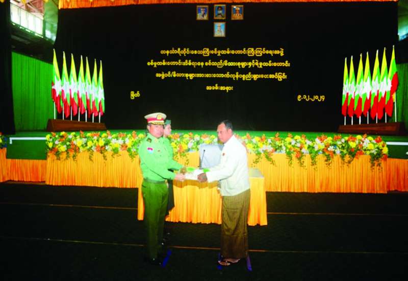 တနင်္သာရီတိုင်းဒေသကြီး မြိတ်မြို့ရှိ စစ်မှုထမ်းဟောင်းအဖွဲ့ဝင်များ၊ ရဲမှုထမ်းဟောင်းအဖွဲ့ဝင်များနှင့် မိသားစုဝင်များအား ဆန်၊ ဆီနှင့် စားသောက်ဖွယ်ရာများ ထောက်ပံ့ပေးအပ်ခြင်းကို ယနေ့နံနက်ပိုင်းတွင် ကမ်းရိုးတန်းဒေသ တိုင်းစစ်ဌာနချုပ် တိုင်းရန်အောင်ခန်းမ၌ ပြုလုပ်ရာ တိုင်းမှူး ဗိုလ်မှူးချုပ် ပြည့်စုံလင်းနှင့် တာဝန်ရှိသူများ၊ စစ်မှုထမ်းဟောင်းအဖွဲ့ဝင်များ၊ ရဲမှုထမ်းဟောင်းအဖွဲ့ဝင်များနှင့် မိသားစုဝင်များ တက်ရောက်ကြသည်။