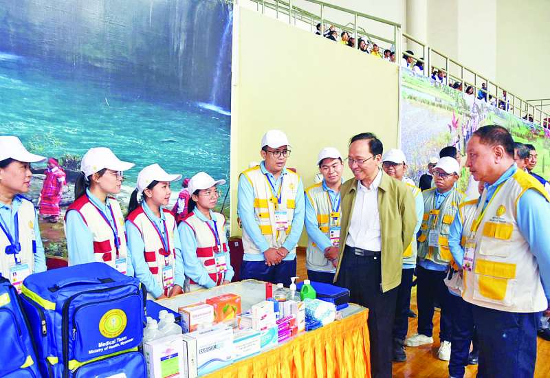 ကျန်းမာရေးဝန်ကြီးဌာန ပြည်ထောင်စုဝန်ကြီး ပါမောက္ခ ဒေါက်တာသက်ခိုင်ဝင်းသည် ပဉ္စမအကြိမ် အမျိုးသားအားကစားပွဲတော် ဖွင့်ပွဲ/ပိတ်ပွဲ အခမ်းအနားများတွင် ပါဝင်ချီတက်ကြမည့် ကျန်းမာရေးဝန်ထမ်းများ၊ အားကစားပြိုင်ပွဲများတွင် ပါဝင်ယှဉ်ပြိုင်မည့် ကျန်းမာရေးဝန်ကြီးဌာန ကိုယ်စားပြုအားကစားသမားများ၊ အုပ်ချုပ်သူများ၊ ကျန်းမာရေးစောင့်ရှောက်မှုပေးမည့်သူများကို ယနေ့နံနက်ပိုင်းတွင် ကျန်းမာရေးဝန်ကြီးဌာန အစည်းအဝေးခန်းမ၌ ရင်းရင်းနှီးနှီးနှုတ်ဆက်ကာ အားပေးစကားပြောကြားသည်။