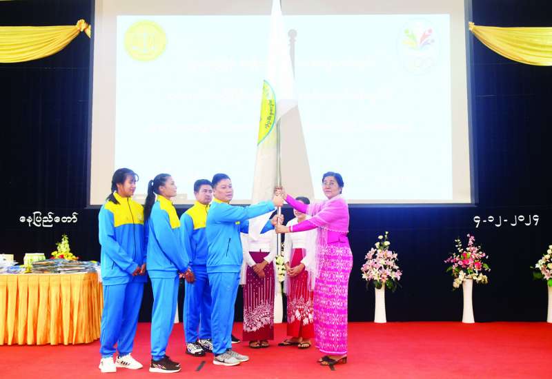 ပဉ္စမအကြိမ် အမျိုးသားအားကစားပွဲတော်တွင်ပါဝင် ယှဉ်ပြိုင်ကြမည့် ပြည်ထောင်စုစာရင်းစစ်ချုပ်ရုံးကိုယ်စားပြု အားကစားသမားများအားအောင် နိုင်ရေးအလံ ပေးအပ်ပွဲကို ယနေ့မွန်းလွဲပိုင်းတွင် နေပြည်တော်ရှိ ပြည်ထောင်စုစာရင်းစစ်ချုပ်ရုံး နဝရတ်ခန်းမ၌ကျင်းပရာ ပြည်ထောင်စုစာရင်းစစ်ချုပ် ဒေါက်တာခင်နိုင်ဦး၊ ဒုတိယစာရင်းစစ်ချုပ်နှင့် တာဝန်ရှိသူများ၊ အားကစားအသင်း အုပ်ချုပ်သူ၊ နည်းပြများနှင့် အားကစားသမားများ တက်ရောက်ကြပြီး ရန်ကုန်တိုင်းဒေသကြီး၊ ရှမ်းပြည်နယ်၊ ဧရာဝတီတိုင်းဒေသကြီး စာရင်းစစ်ချုပ်ရုံးမှ တာဝန်ရှိသူများက Online ဖြင့် တက်ရောက်ကြသည်။