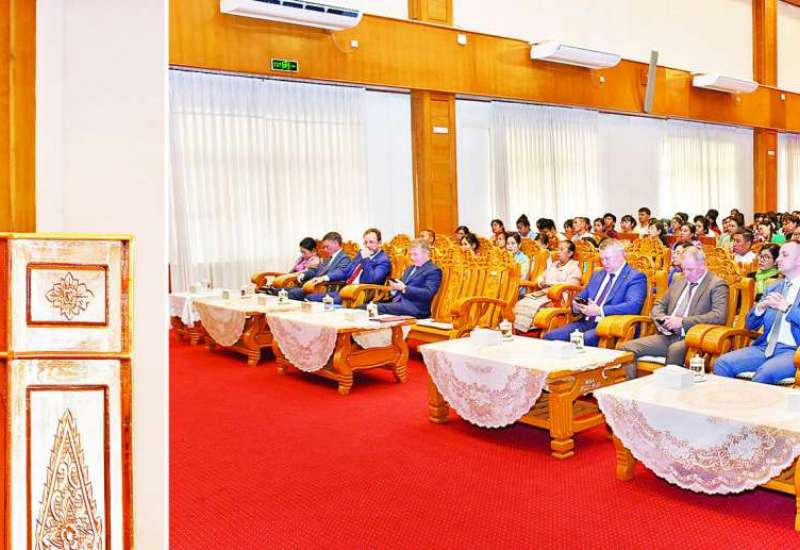 ရုရှားဖက်ဒရေးရှင်းနိုင်ငံ ဒူးမားလွှတ်တော်ဒုတိယဥက္ကဋ္ဌ H.E.Mr.Sholban Kara-Ool သည် ယနေ့မွန်းလွဲပိုင်းတွင် Naypyitaw State Academy (NSA) မှ ကျောင်းသား ကျောင်းသူများအား “Russia and friendly countries in multipolar world” ခေါင်းစဉ် ဖြင့် သင်ခန်းစာပို့ချသည်။
