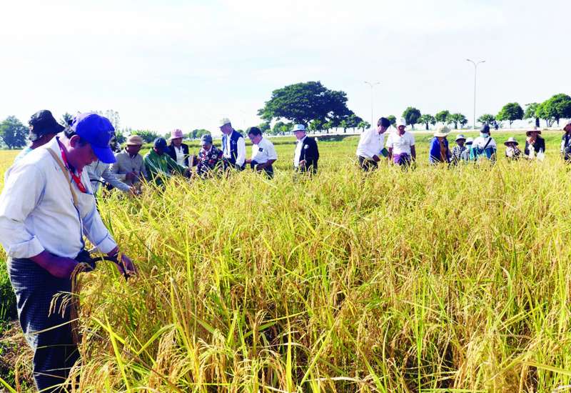 စိုက်ပျိုးရေး၊ မွေးမြူရေးနှင့်ဆည်မြောင်းဝန်ကြီးဌာန ဒုတိယဝန်ကြီး ဒေါက်တာတင်ထွဋ်သည် ယနေ့နံနက်ပိုင်းတွင် နေပြည်တော်ဇမ္ဗူသီရိမြို့နယ် တဲကြီးကုန်းကျေးရွာတွင် စိုက်ပျိုးရေးသုတေ သနဦးစီးဌာန၊ စိုက်ပျိုးရေးဦးစီးဌာန စိုက်ပျိုးရေးပညာရှင်များဦးဆောင်၍ တောင်သူများပူးပေါင်းပါဝင်သော စပါးမျိုးသားဆက်လိုင်းများ မွေးမြူရွေးချယ်စိုက်ကွင်းကို ကွင်းဆင်းကြည့်ရှုစစ်ဆေးသည်။