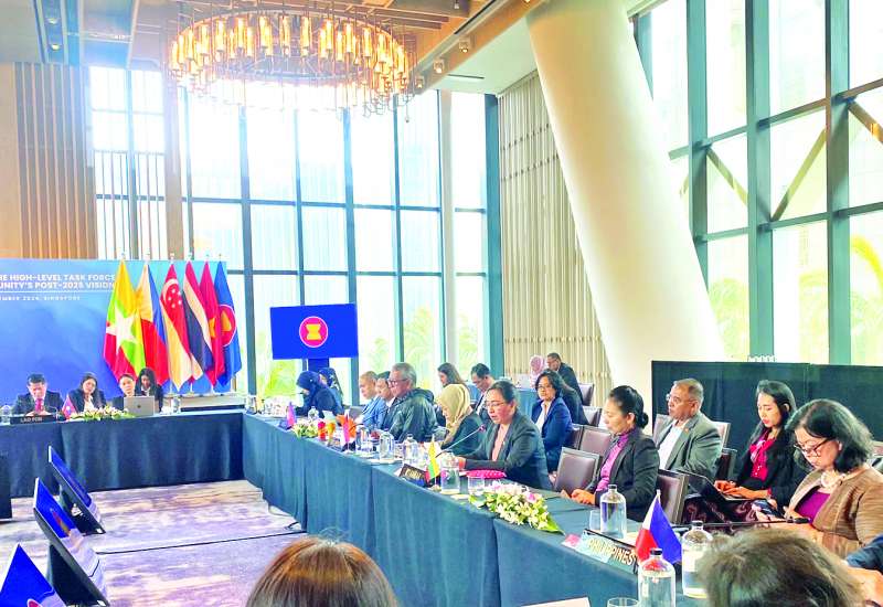 စင်ကာပူနိုင်ငံတွင် နိုဝင်ဘာ ၁၉ ရက်မှ ၂၃ ရက်အထိ ကျင်းပသည့် အာဆီယံအသိုက်အဝန်း ၂၀၂၅ ခုနှစ်အလွန် မျှော်မှန်းချက်ရေးဆွဲရေးဆိုင်ရာ အဆင့်မြင့်လုပ်ငန်းအဖွဲ့၏ (၁၈) ကြိမ်မြောက် အစည်းအဝေးသို့ အာဆီယံအသိုက်အဝန်း ၂၀၂၅ ခုနှစ်အလွန် မျှော်မှန်းချက်ရေးဆွဲရေးဆိုင်ရာ မြန်မာနိုင်ငံ၏ အဆင့်မြင့်လုပ်ငန်းအဖွဲ့ခေါင်းဆောင်၊ ရင်းနှီးမြှုပ်နှံမှုနှင့် နိုင်ငံခြားစီးပွားဆက်သွယ်ရေးဝန်ကြီးဌာန ဒုတိယဝန်ကြီး ဒေါက်တာဝါဝါမောင် ဦးဆောင်၍ နိုင်ငံခြားရေးဝန်ကြီးဌာန အာဆီယံရေးရာဦးစီးဌာနမှ တာဝန်ရှိသူများ တက်ရောက်ကြသည်။